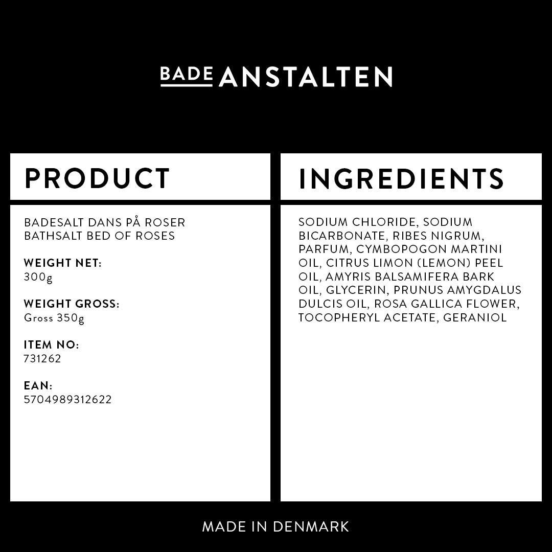 Skäm bort sinnena och kroppen med ett väldoftande rosenbad med rosor, havssalt, mandelolja och avslappnande eteriska oljor i form av palmarosa, citron och sandelträ. Njut av badsaltet i badkaret eller i ett härligt fotbad när du behöver skämma bort dig själv.